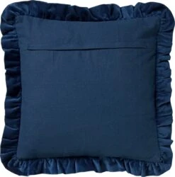 YARA – Kussenhoes 100% Katoen 45×45 Cm – Velvet – Insignia Blue – Blauw – Rondom Ruches – Met Rits