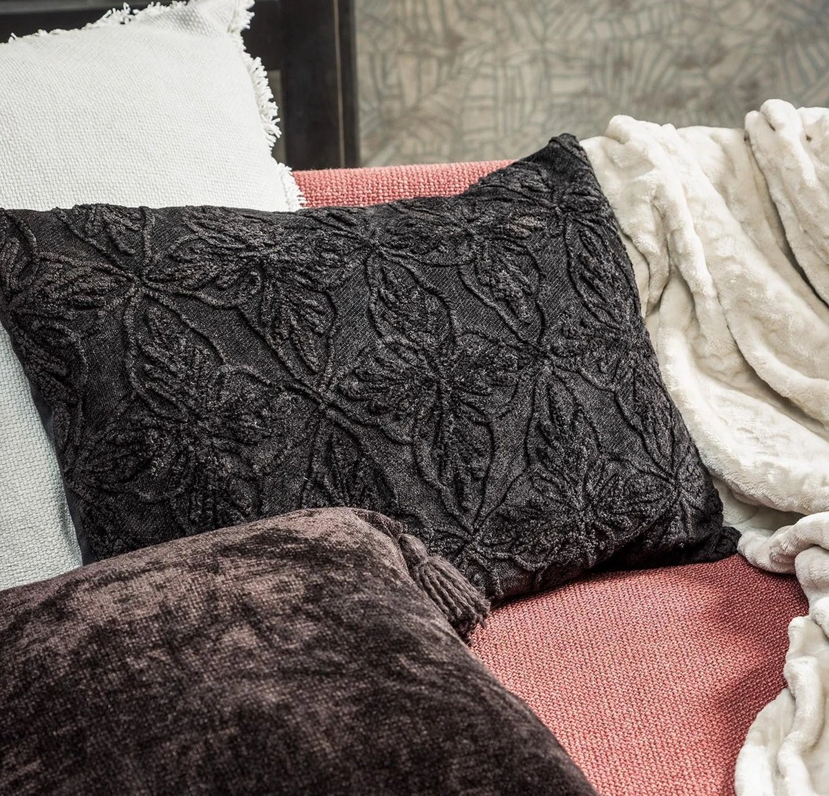 Kussenhoes Amar heeft een verfijnde geborduurde look! Deze kussenhoes met afmeting 40×60 cm in de kleur Raven heeft een gebloemd design en is voorzien van een rits. Met de kussenhoezen van Dutch Decor kun je eindeloos combineren. Kussenhoes Amar wordt geleverd zonder vulling.