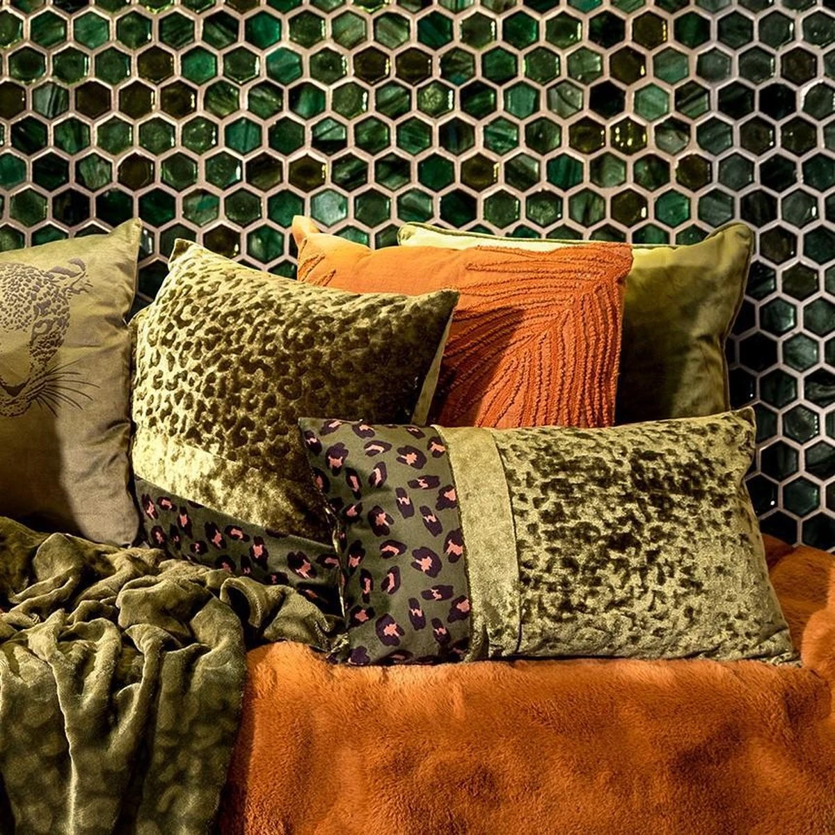 BAILEY – Kussenhoes Velvet 30×50 Cm Chive – Groen – Panterprint – Met Rits