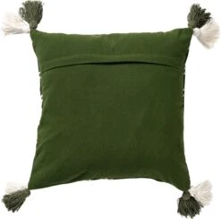 ZITA – Kussenhoes Katoen 45×45 Cm – Chive – Groen / Wit / Bruin – Met Flosjes – Met Rits