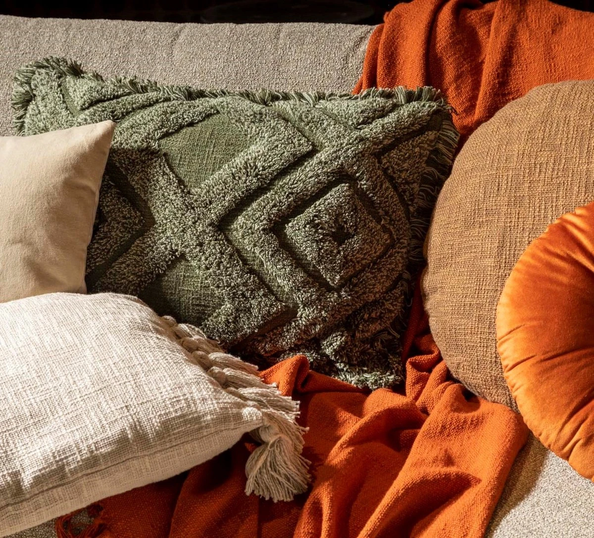 BOHO – Sierkussen Van Katoen 40×60 Cm Chive – Groen – Inclusief Binnenvulling