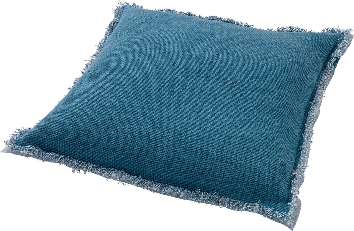 BURTO – Kussenhoes Van Gewassen Katoen Provincial Blue 60×60 Cm – Blauw – Met Rits