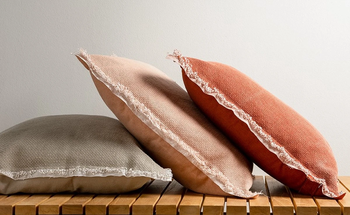 RUBY – Kussenhoes Katoen 45×45 Cm Muted Clay – Roze – Met Flosjes – Exclusief Binnenkussen