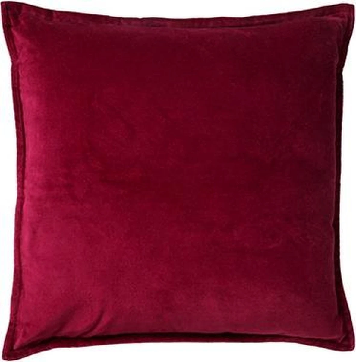 Sierkussen van zacht velours. Velours is een fluweelachtige stof die heerlijk zacht aanvoelt en een mooie glans heeft. Dit komt o.a. door de speciale weeftechniek, waarbij ‘de haartjes’ wat meer omhoog komen te staan. Bij velours wordt er onderscheid gemaakt tussen katoen velours en polyester velours. De effen kussenhoes van sierkussen Caith is van katoen en is van een hogere kwaliteit dan sierkussens van polyester velours. Sierkussen Caith is groter dan een standaard sierkussen en heeft een afmeting van 50×50 cm. De Pantone kleur Red Plum heeft dankzij de weeftechniek van het velours een diepe kleurtoon en is goed te combineren met andere kleuren of dessins. Dankzij de onopvallende rits is de hoes gemakkelijk van het binnenkussen te halen om te wassen of reinigen. De hoes kan dan met de hand of met een handwasprogramma gewassen worden op maximaal 30 graden. Het sierkussen wordt in Nederland gevuld met een 50×50 cm binnenkussen. Het polyester binnenkussen geeft sierkussen Caith een comfortabele dikte en zorgt ervoor dat het kussen zijn vorm blijft behouden.