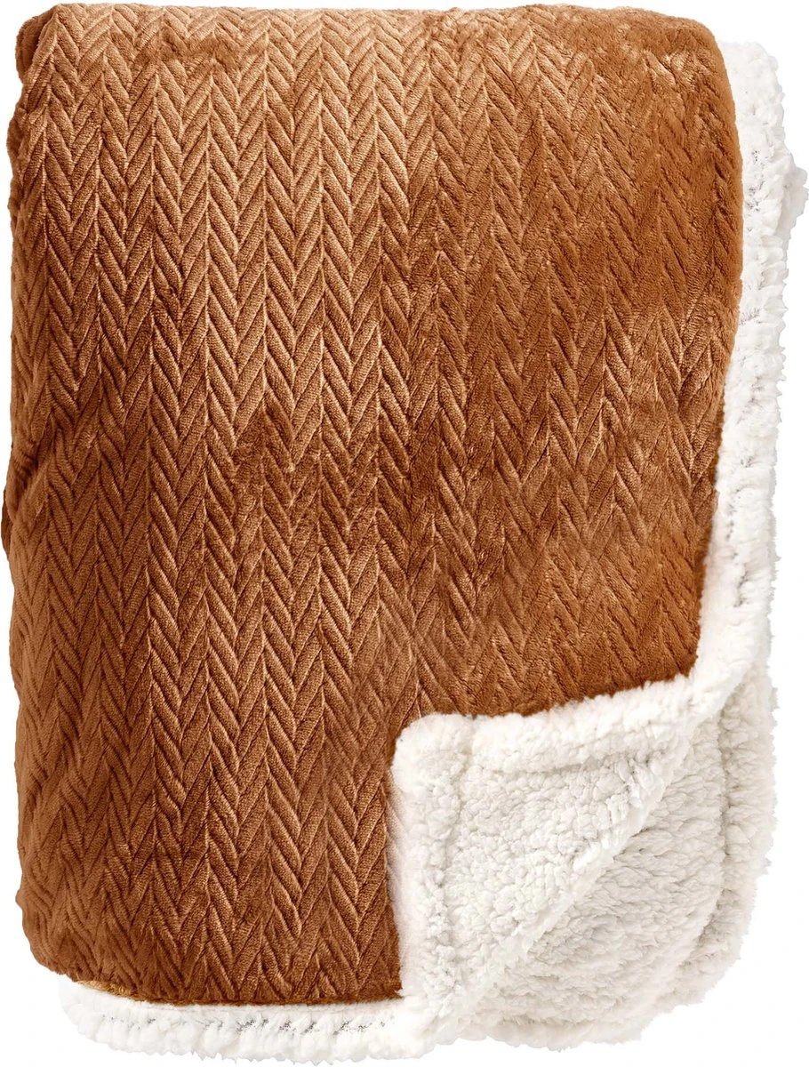 Plaid Bobby is een heerlijke zachte plaid waar je lekker onder weg kunt kruipen. De plaid heeft een formaat van 150×200 cm en is gemaakt van 100% polyester. De buitenkant heeft een subtiel visgraat patroon in de kleur Tobacco Brown en de binnenkant is wit van kleur. Ook dit plaid kun je eindeloos combineren met de sierkussens van Dutch Decor.