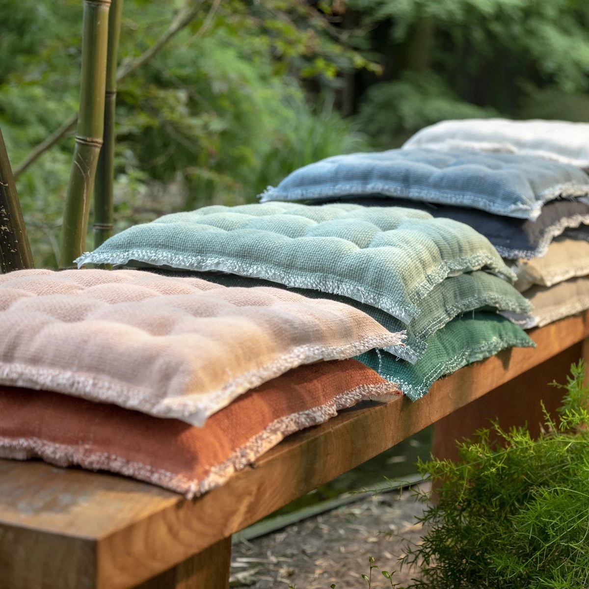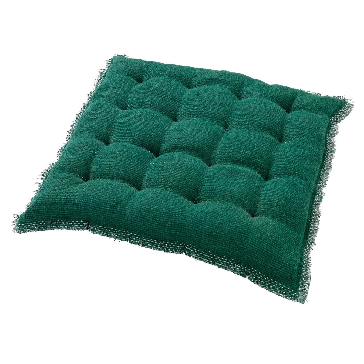 Stoelkussen Burto is 40×40 cm en heeft een gerafelde bies.