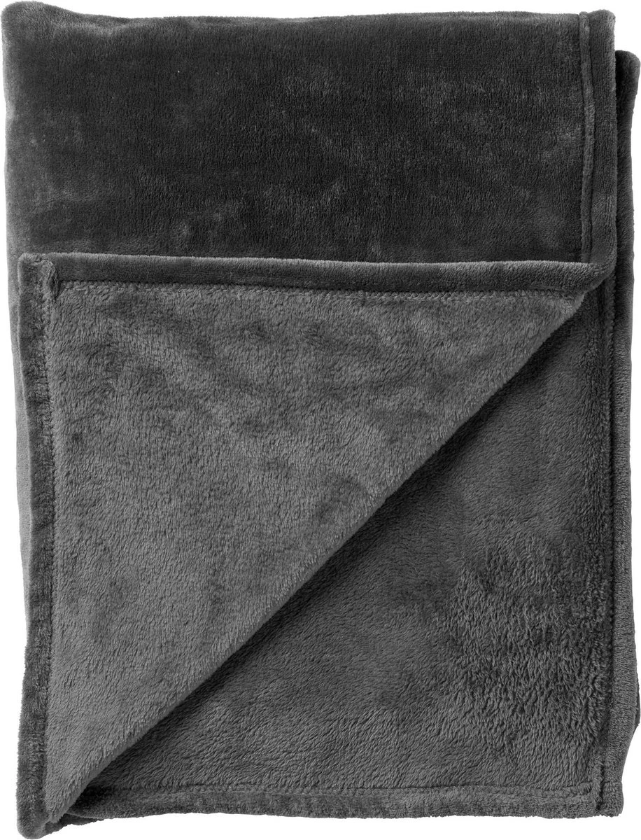 Dutch Decor – CHARLIE – Plaid Flannel Fleece XL – 200×220 Cm – Charcoal Grey – Grijs – Deken