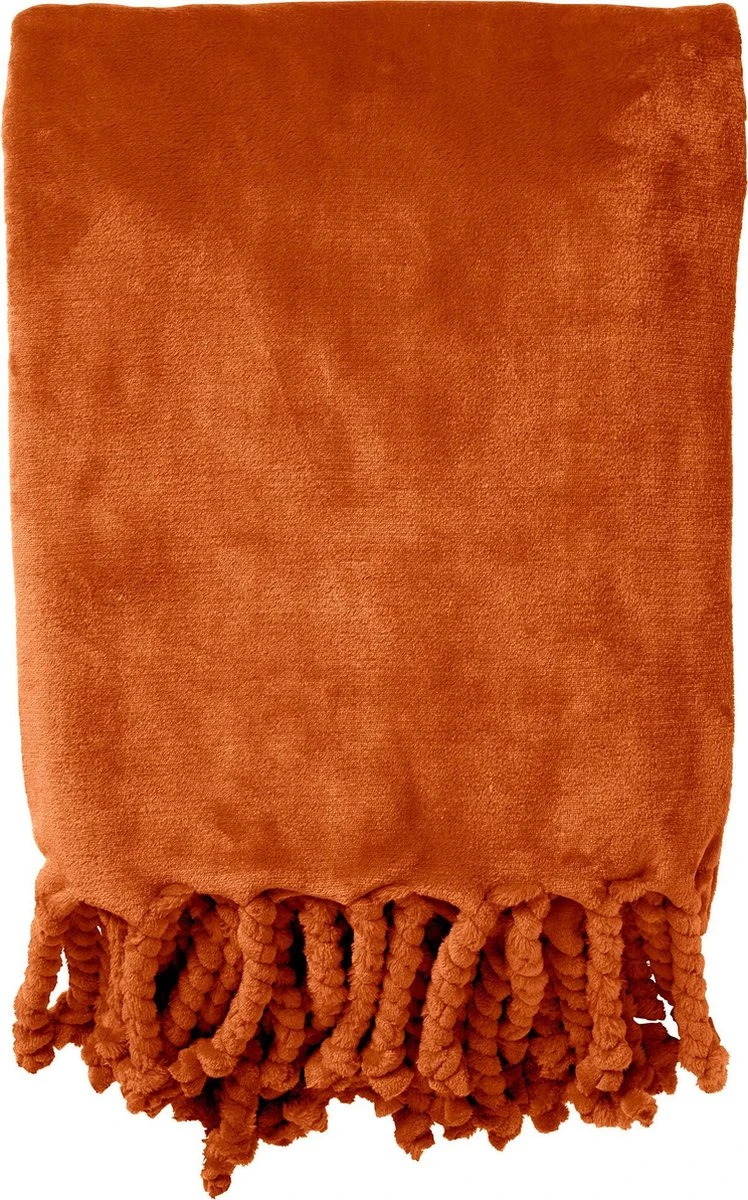 Dutch Decor – FLORIJN – Plaid Fleece 150×200 Cm – Potters Clay – Oranje – Superzacht – Met Franjes – Deken