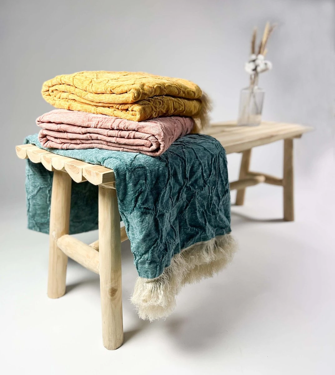 Plaid Florine heeft een mooie velvet look met franjes. Dit plaid met afmeting 140×180 cm in de kleur Sagebrush Green geeft sfeer aan je woning. De plaids van Dutch Decor kun je eindeloos combineren met de kussens van Dutch Decor.
