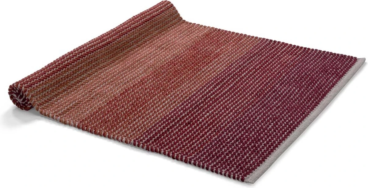 Het vloerkleed is helemaal uit katoen gemaakt en is 75 bij 120 centimeter groot.
