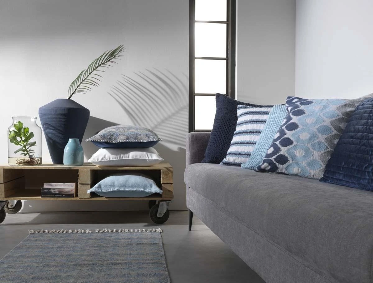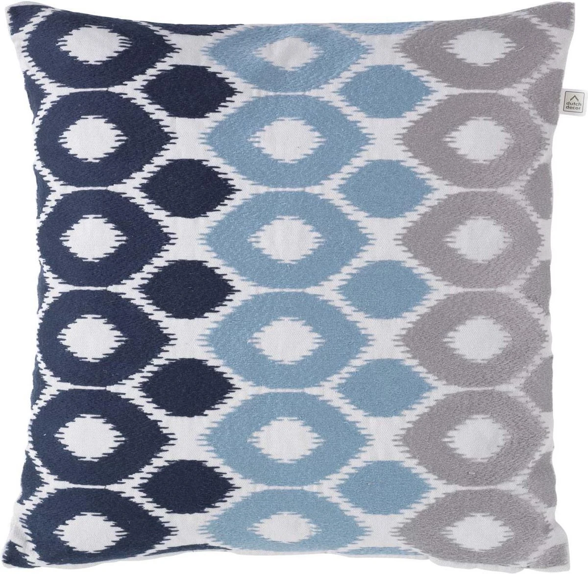 EGEA – Sierkussen Geborduurd 45×45 Cm – Lichtgrijs – Lichtblauw – Donkerblauw – Inclusief Binnenkussen