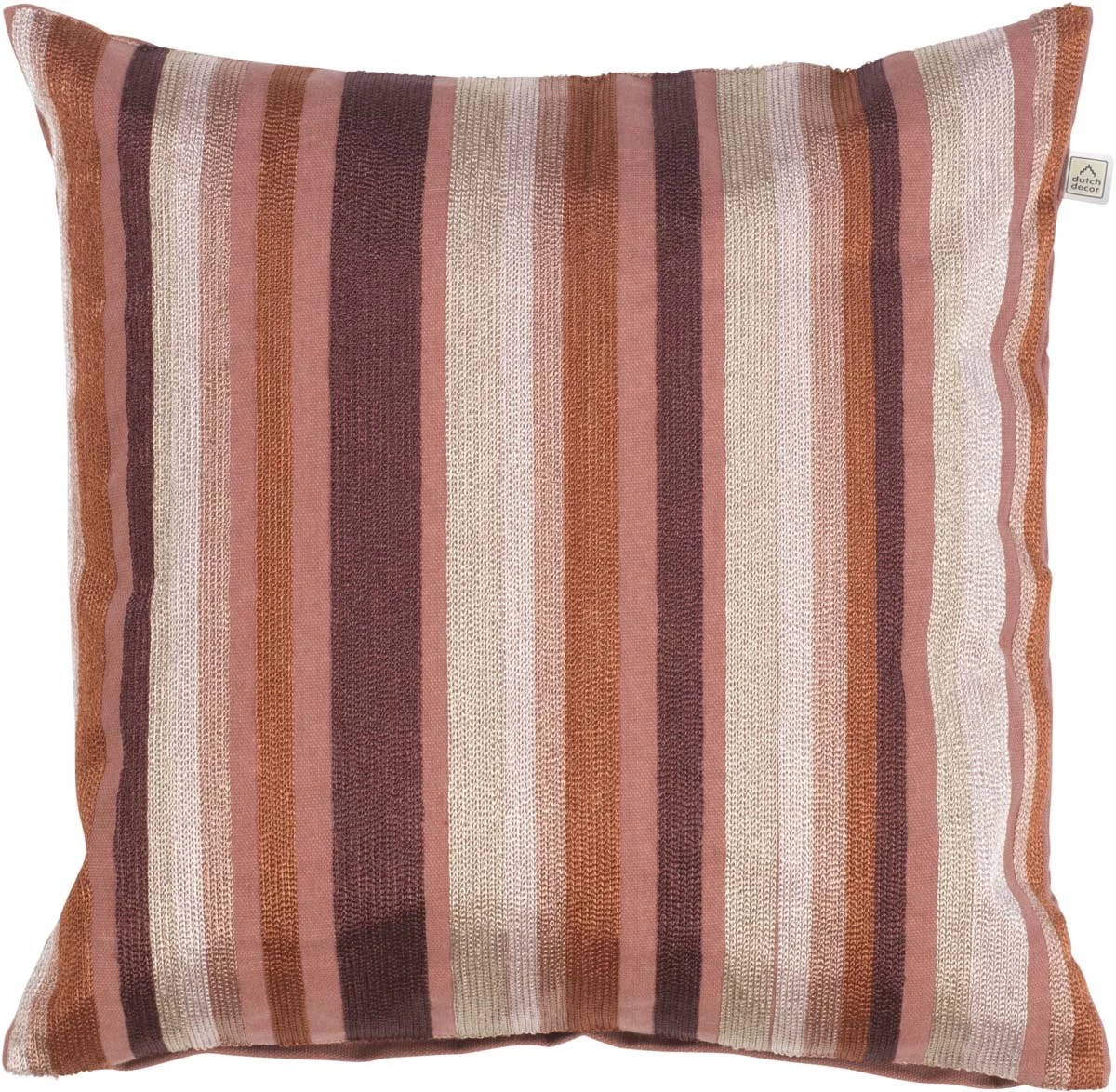 ERIK – Kussenhoes Geborduurd 45×45 Cm – Mahonie – Bruin – Oranje – Beige – Streepjes – Retro – Exclusief Binnenkussen