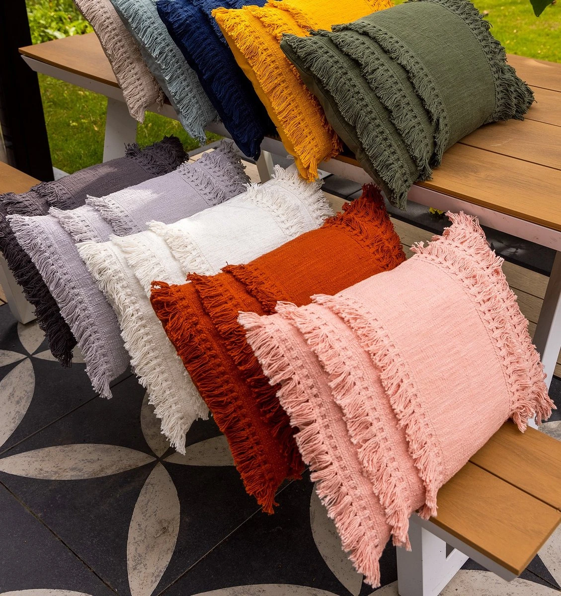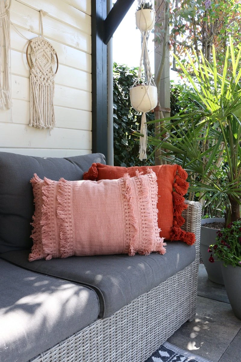 RUBY – Kussenhoes Katoen 45×45 Cm Muted Clay – Roze – Met Flosjes – Exclusief Binnenkussen