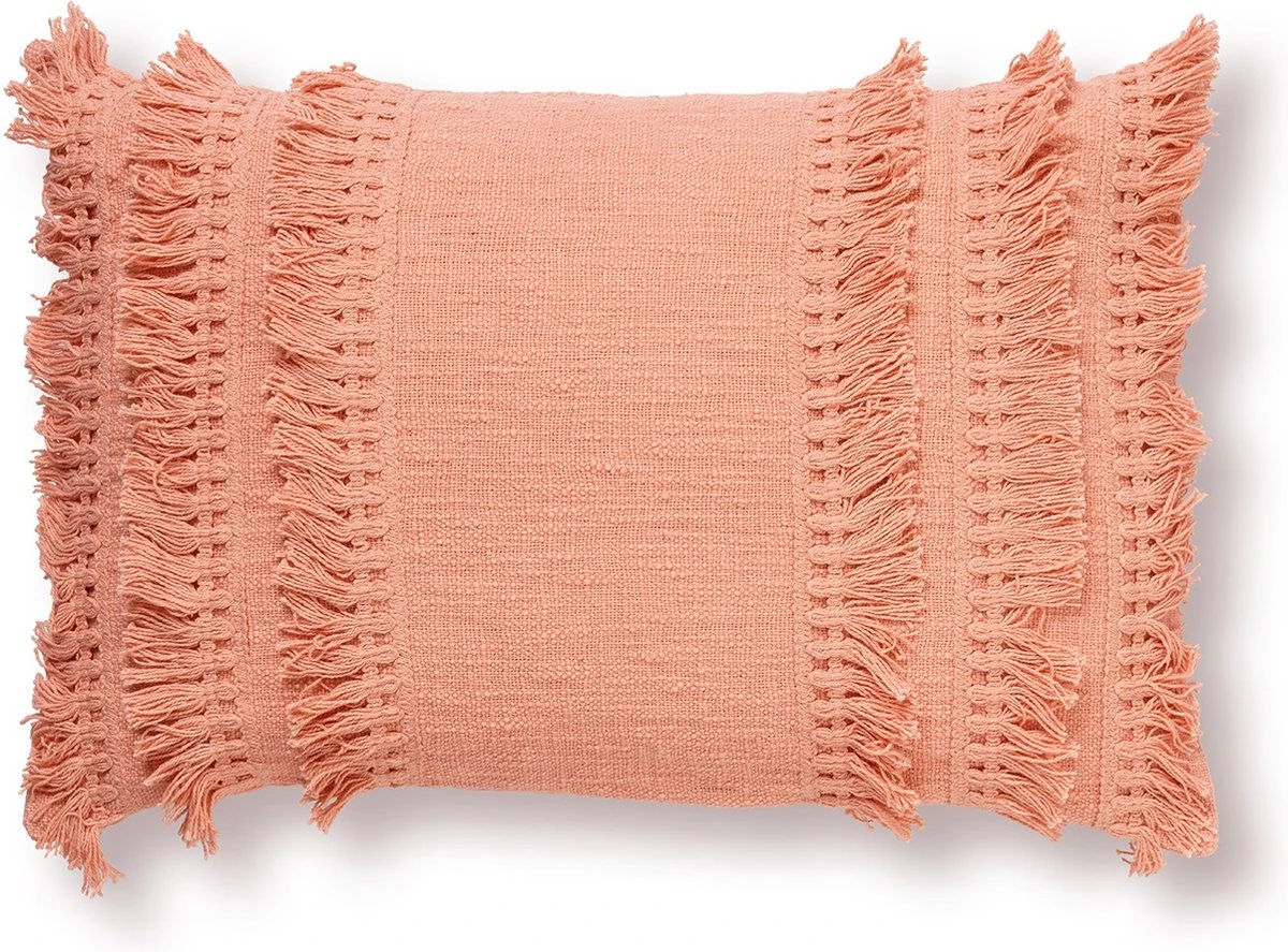 Sierkussen Fara is een mooi katoenen kussen met franjes. Dit sierkussen met afmeting 40×60 cm in de kleur Muted Clay is een unikleur kussen van 100% katoen en is voorzien van een rits. Sierkussen Fara wordt geleverd met passend vulkussen.