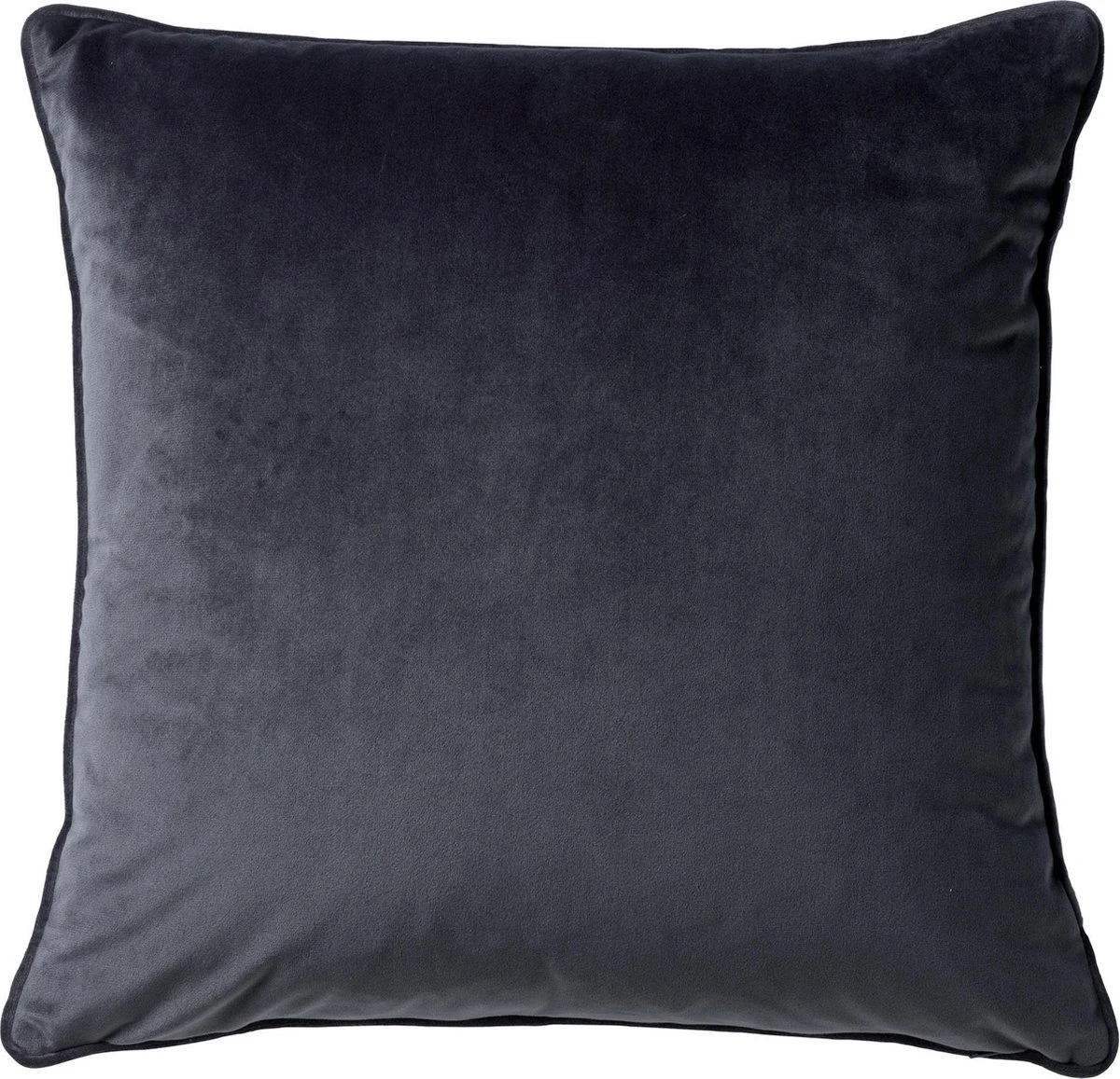 Sierkussen Finn 60×60 cm is extra groot en eenvoudig te mixen & matchen met andere sierkussens. Dit sierkussen met afmeting 60×60 cm in de kleur Charcoal grey heeft een velvet look en is voorzien van een rits. Sierkussen Finn wordt geleverd met passend vulkussen.