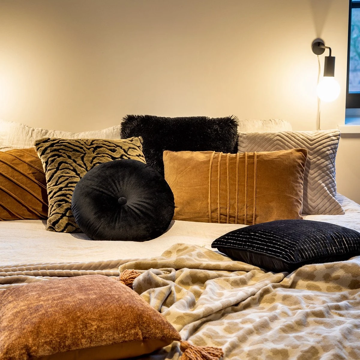 FLUFFY – Sierkussen Unikleur 45×45 Cm – Raven – Zwart – Inclusief Binnenvulling