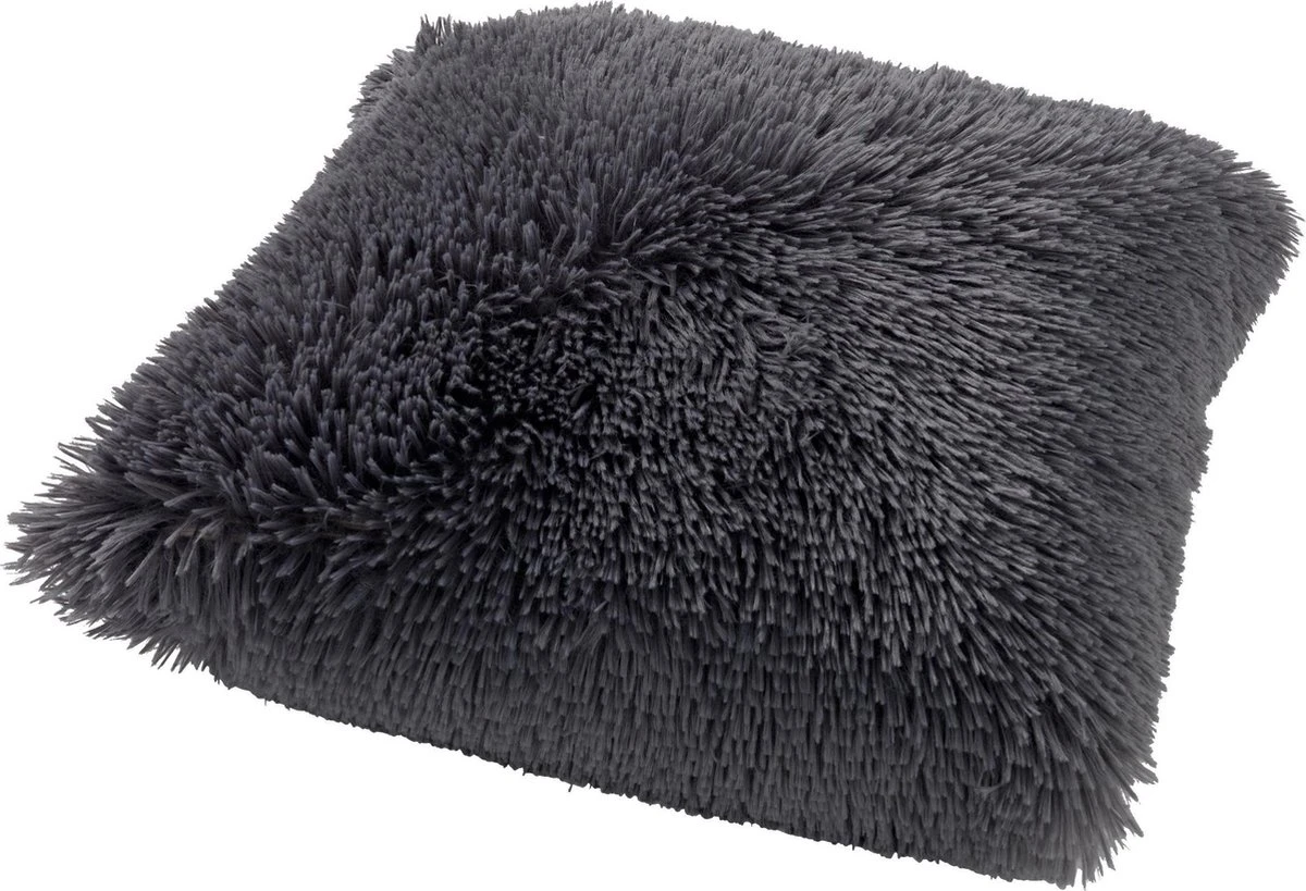 FLUFFY – Sierkussen Unikleur 60×60 Cm – Charcoal Gray – Antraciet – Inclusief Binnenvulling
