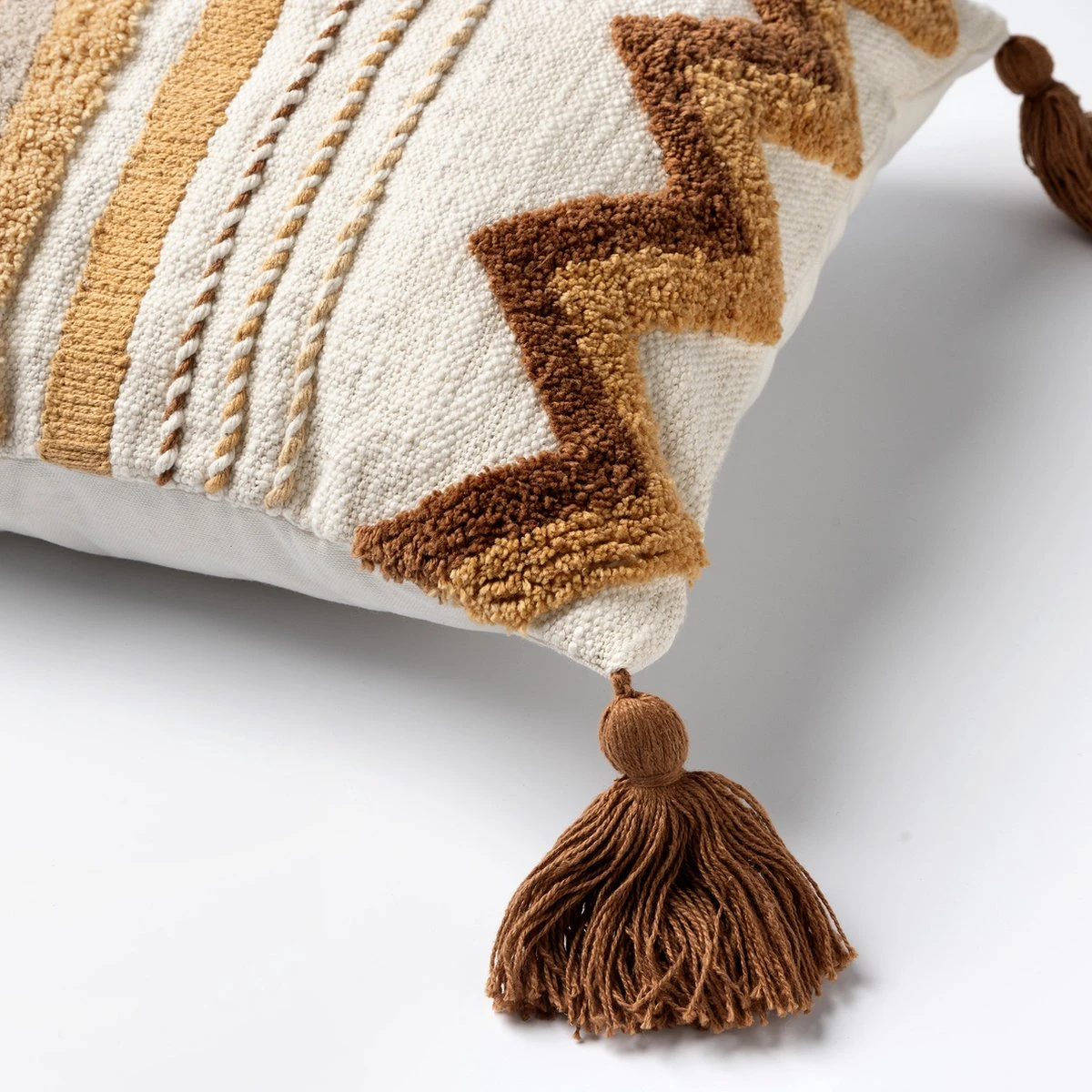 Sierkussen Gazelle heeft flosjes aan iedere punt en een grafisch dessin. Dit sierkussen met afmeting 40×60 cm in de kleur Tobacco Brown is voorzien van een rits. Het kussen is standaard gevuld met een polyester binnenkussen. Met de Sierkussens van Dutch Decor kun je eindeloos combineren.