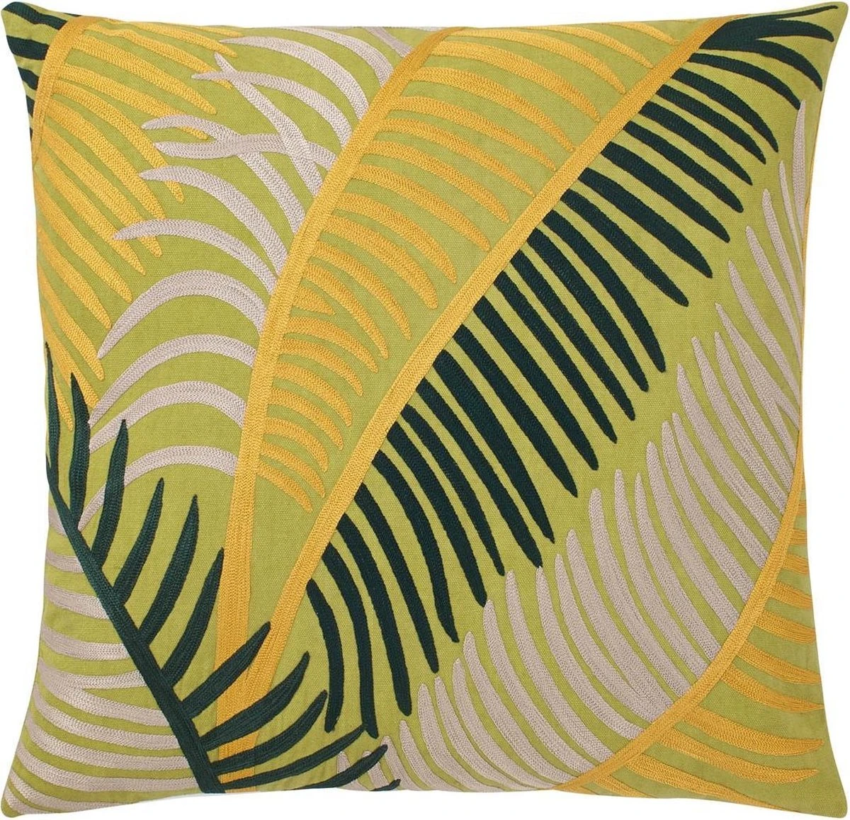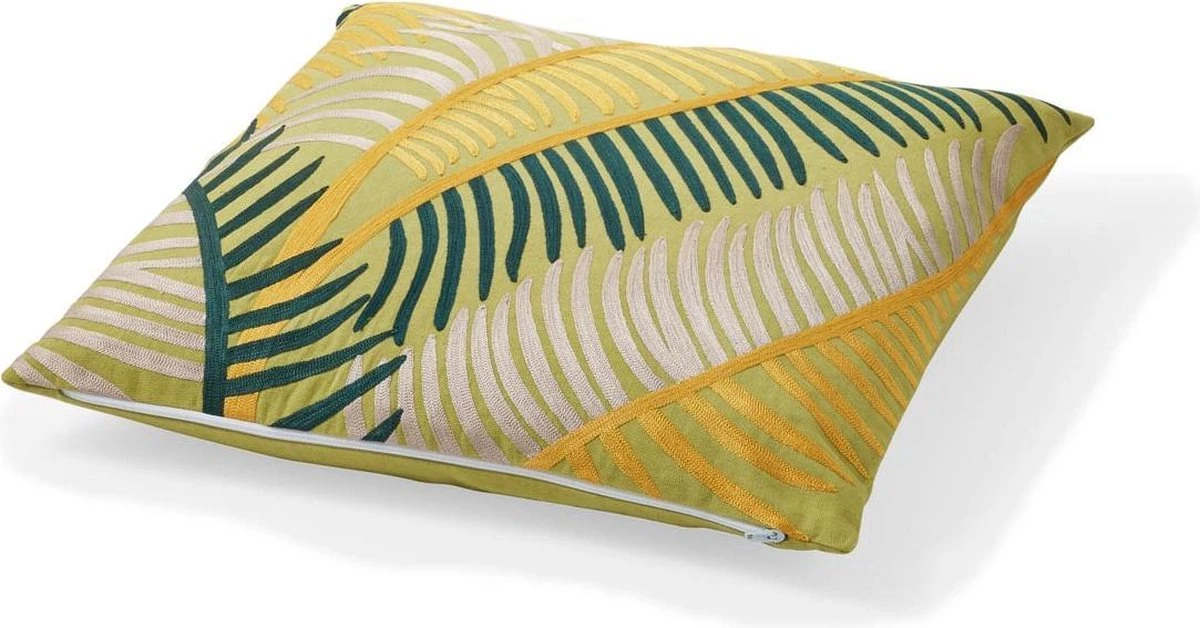 HAPAG – Sierkussen Geborduurd 45×45 Cm – Lime – Geel – Donkergroen – Beige – Botanisch – 100% Katoen – Inclusief Binnenvulling