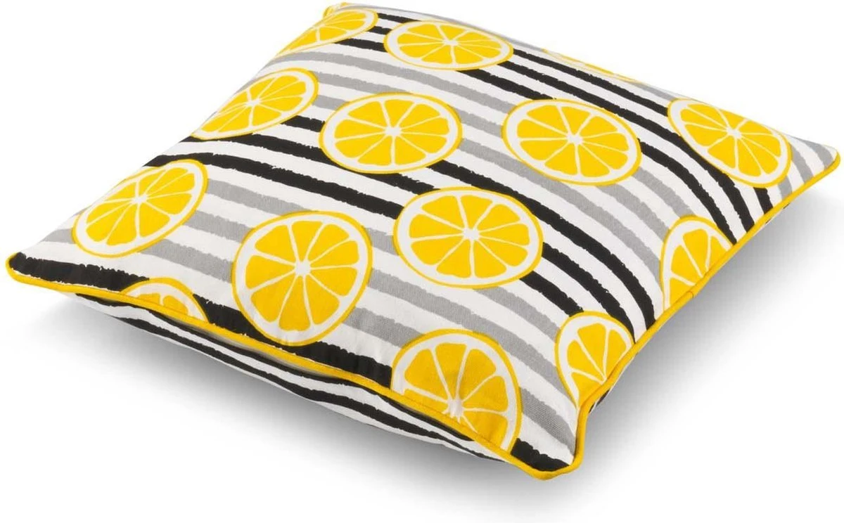 JULIA – Sierkussen Citroenen 45×45 Cm – Geel – Zwart – Wit – Streepjes – Inclusief Binnenkussen