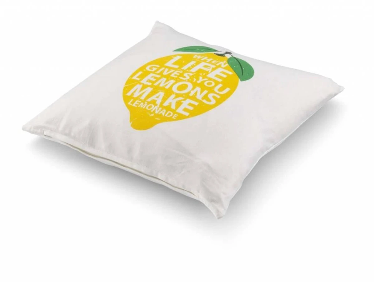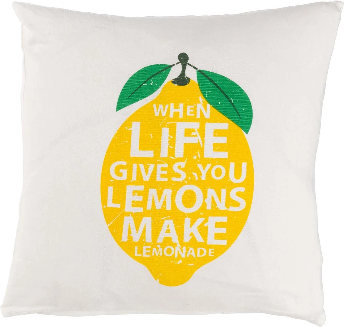 LARA – Kussenhoes Katoen 45×45 Cm – Ivoor / Wit – When Life Give You Lemons Make Lemonade – Citroen – Exclusief Binnenkussen