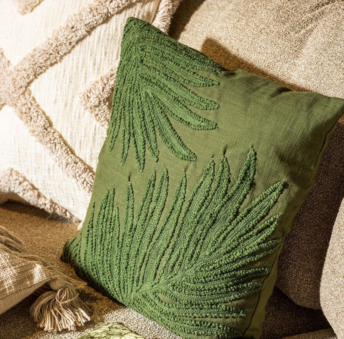 Kussenhoes Lex heeft een mooi katoenen stof en een natuurlijke uitstraling! Deze kussenhoes met afmeting 45×45 cm in de kleur Chive heeft een design van palmbladen en is voorzien van een rits. Met de kussenhoezen van Dutch Decor kun je eindeloos combineren. Kussenhoes Lex wordt geleverd zonder vulling.