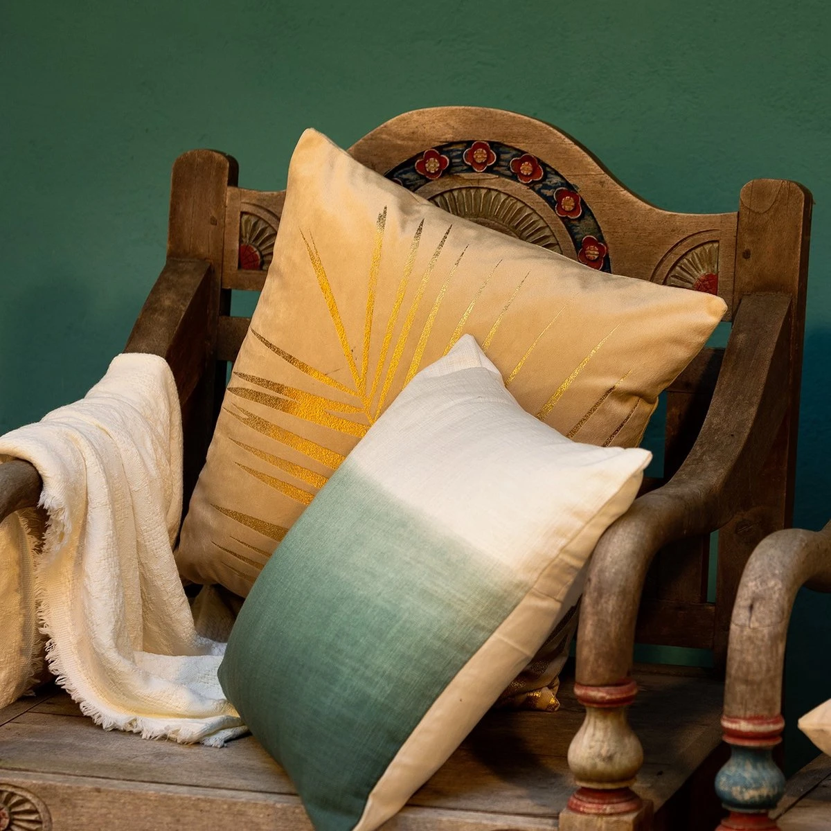 Kussenhoes Luno heeft een vrolijke, gouden palmblad opdruk. Deze kussenhoes met afmeting 45×45 cm in de kleur Semolina is voorzien van een rits. Het kussenhoesje is gemakkelijk te vullen met een standaard 45×45 cm binnenkussen. Met de Kussenhoezen van Dutch Decor kun je eindeloos combineren.