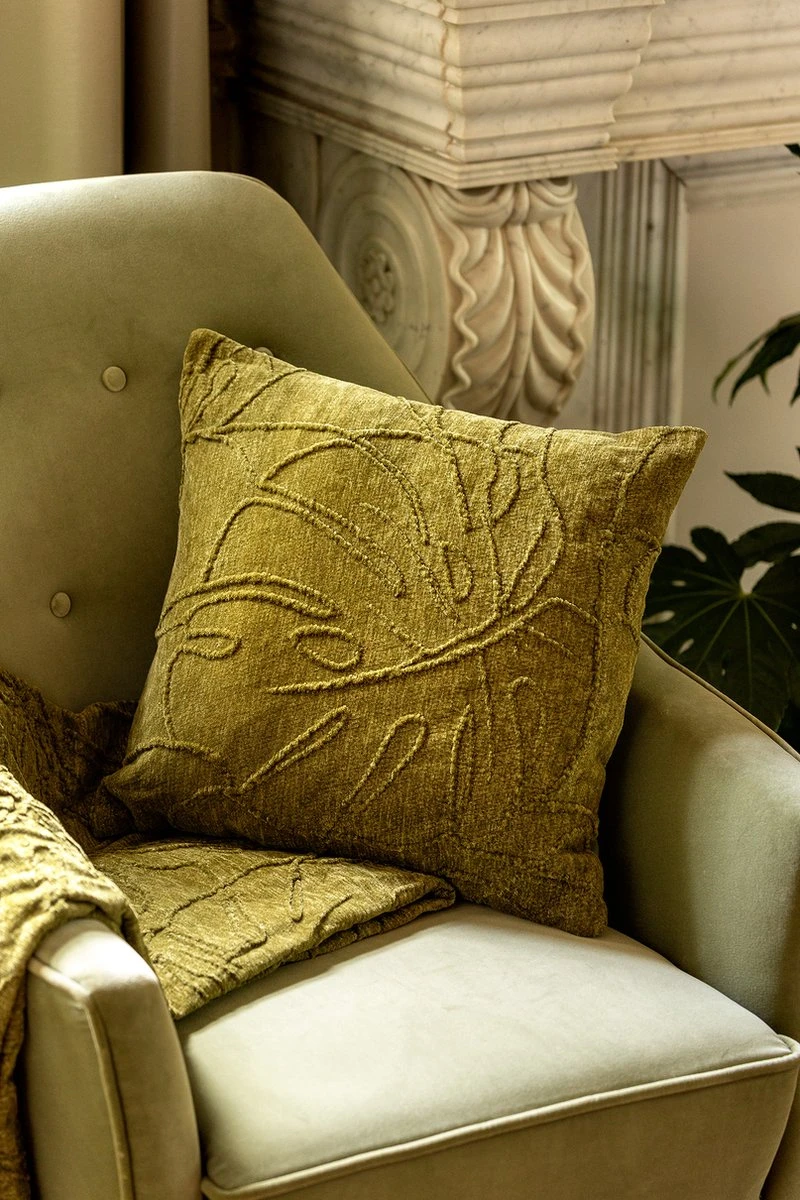 Kussenhoes May voelt lekker zacht aan en heeft een driedimensionaal bladmotief. Deze kussenhoes met afmeting 45×45 cm in de kleur Olive Branch is voorzien van een rits. Het kussenhoesje is gemakkelijk te vullen met een standaard 45×45 cm binnenkussen. Met de Kussenhoezenvan Dutch Decor kun je eindeloos combineren.