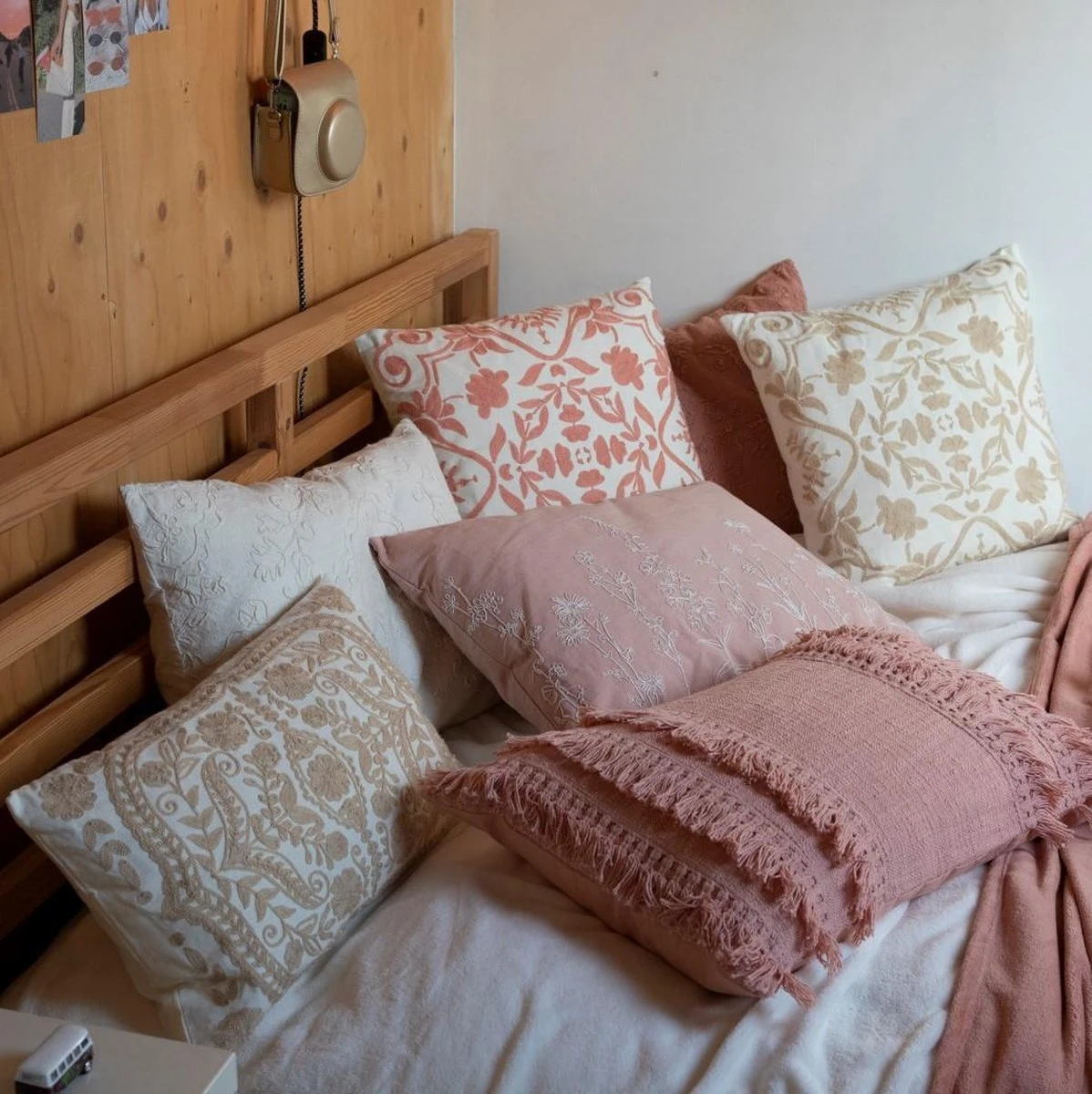 RUBY – Kussenhoes Katoen 45×45 Cm Muted Clay – Roze – Met Flosjes – Exclusief Binnenkussen