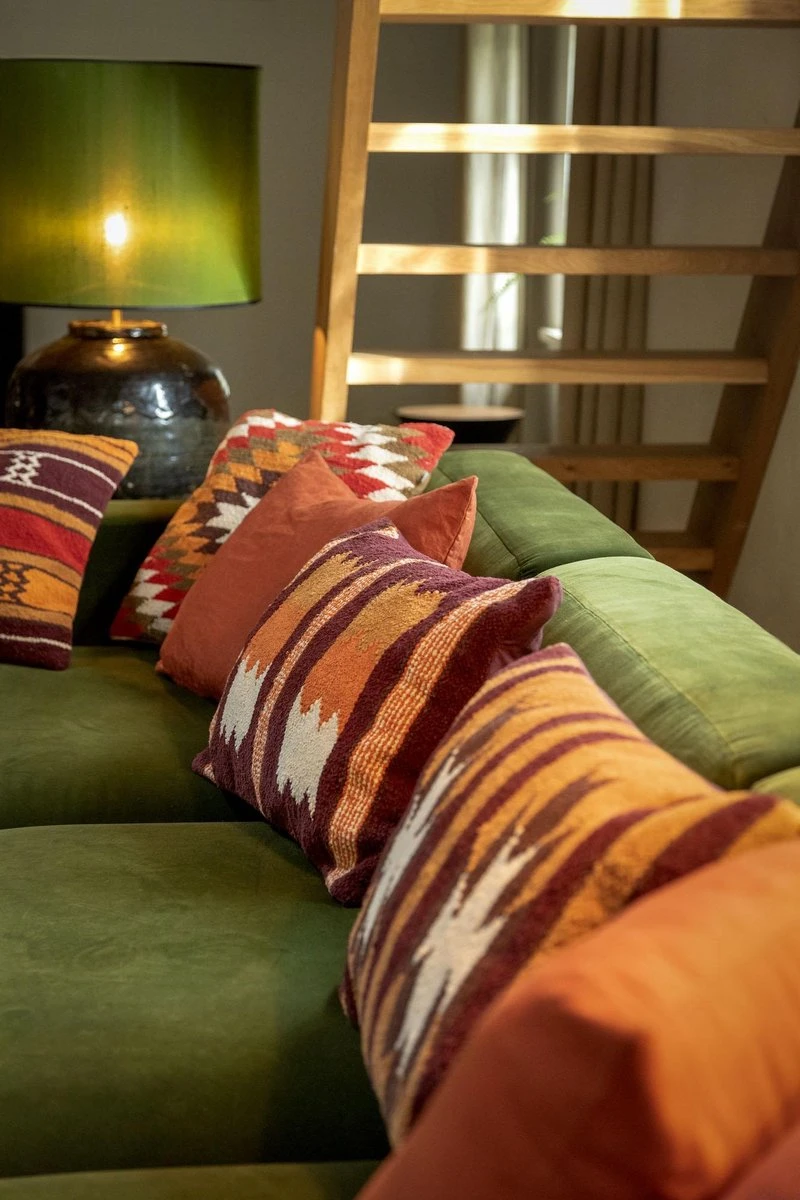 Sierkussen Kelim Nalu heeft aan één zijde een uniek en opvallend patroon. De achterkant van de kussenhoes is effen. Sierkussen Kelim Nalu wordt geleverd met een polyester vulkussen. Ook leverbaar als losse kussenhoes. De kussenhoes heeft een rits, zodat deze gemakkelijk van de kussenvulling kan worden afgehaald om te wassen (handwas).