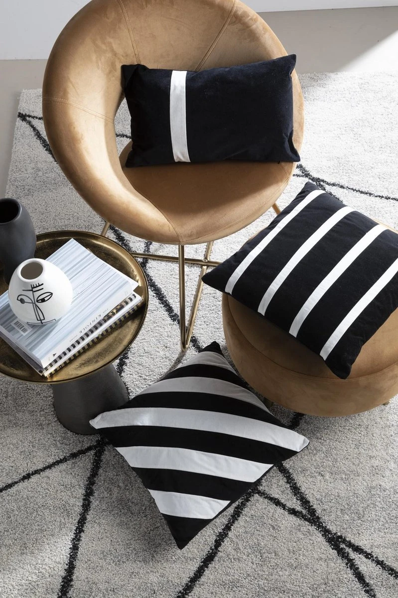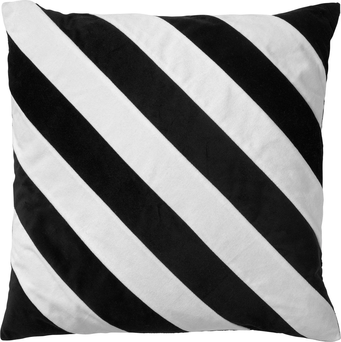 PEBBE – Sierkussen Velvet 45×45 Cm – Raven – Zwart – Wit – Strepen – Inclusief Binnenvulling
