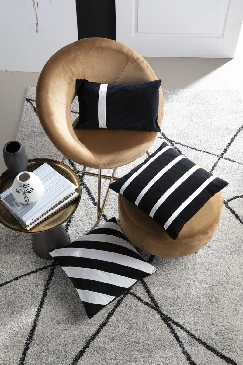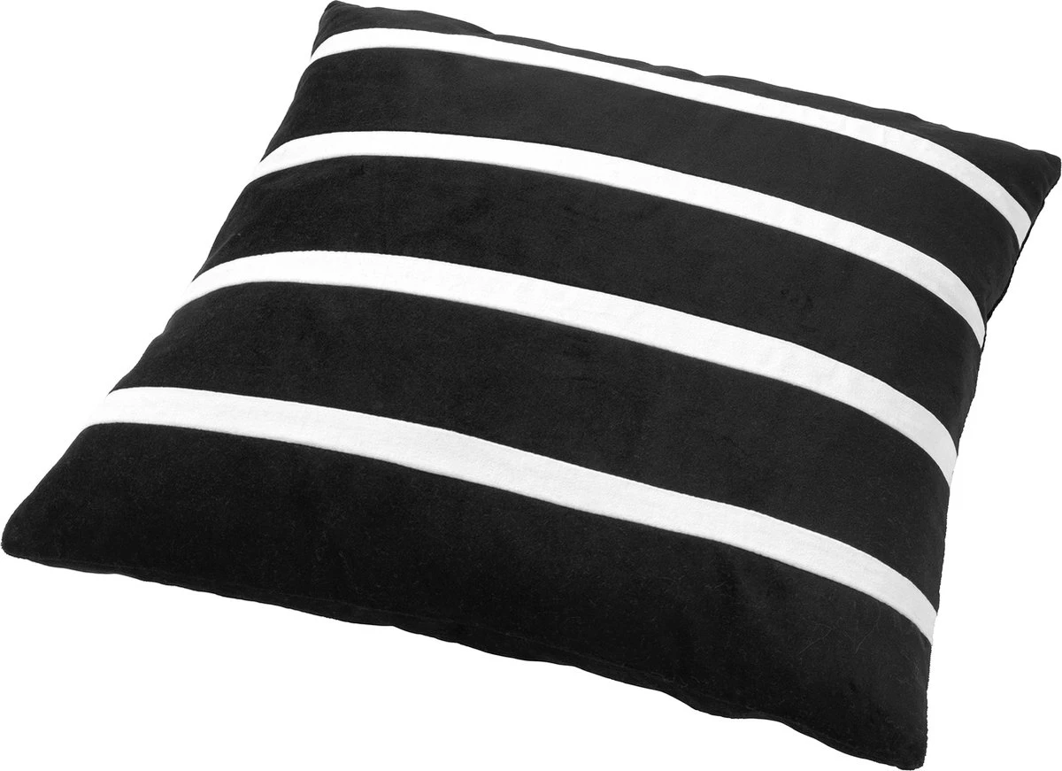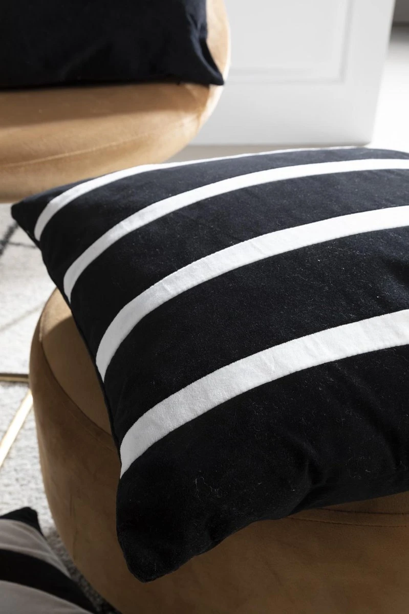 PEMM – Kussenhoes Velvet 45×45 Cm – Raven – Zwart – Witte Streepjes – Exclusief Binnenkussen