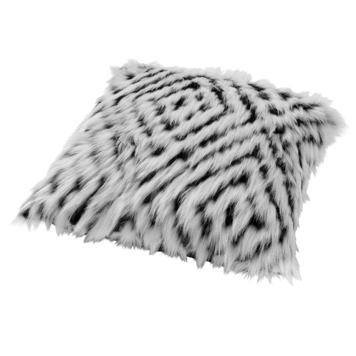PHILOU – Sierkussen 45×45 Cm – Snow White – Wit En Zwart – Velvet – Fluffy – Inclusief Binnenkussen