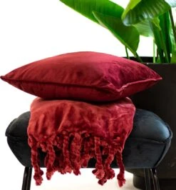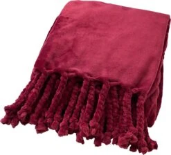 Dutch Decor – FLORIJN – Plaid Fleece 150×200 Cm – Merlot – Rood – Superzacht – Met Franjes – Deken