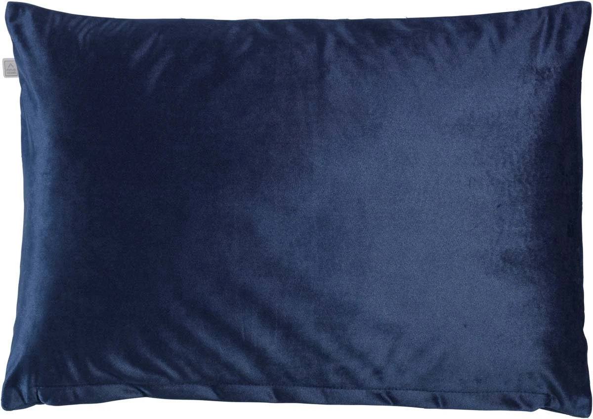 Donkerblauwe kussenhoes met zachte velvet stof. Door de handige rits is het kussenhoesje makkelijk te vullen met een 40×60 cm vulkussen . Kussenhoes Samla is eventueel ook verkrijgbaar als gevuld sierkussen.
