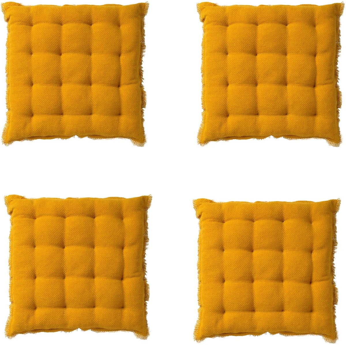 Set Van 4 – Dutch Decor BURTO – Stoelkussen Van Gewassen Katoen Golden Glow 40×40 Cm – Geel – Zitkussen
