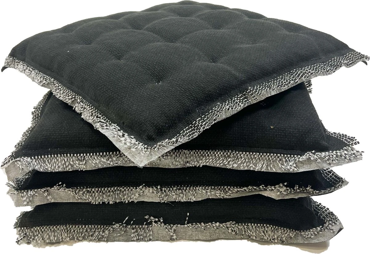 Set Van 4 – Dutch Decor BURTO – Stoelkussen Van Gewassen Katoen Raven 40×40 Cm – Zwart – Zitkussen