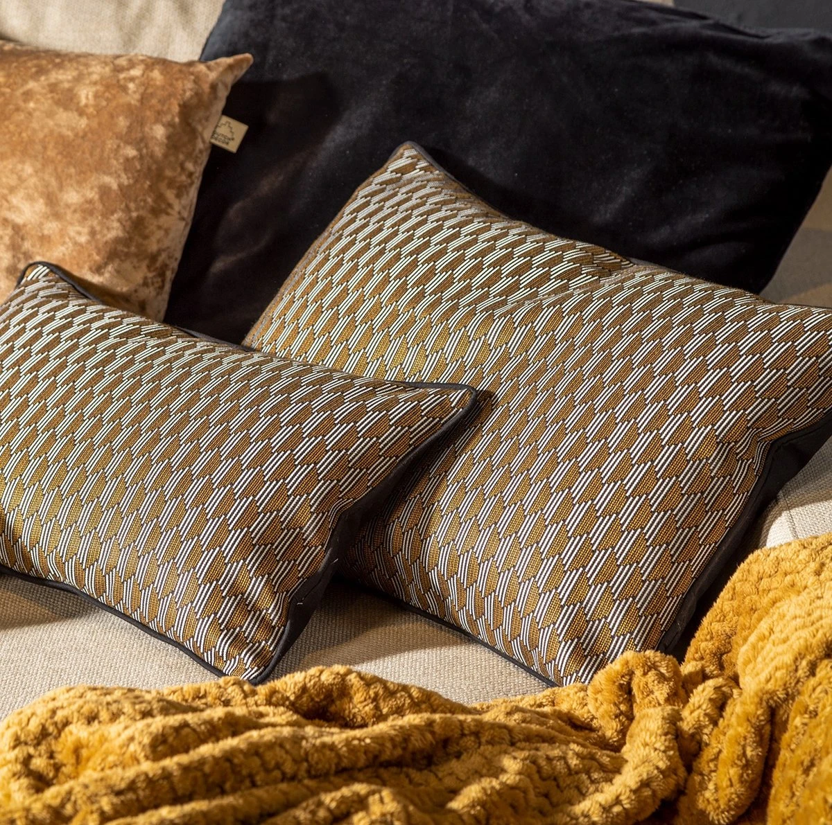 Geef jouw interieur in een handomdraai een nieuwe look met deze vierdelige set sierkussens in de kleuren zwart en bruin Alle sierkussens hebben een rits en worden geleverd inclusief polyester binnenkussen. De stof is lekker zacht en makkelijke te combineren. De set wordt geleverd in één doos.
