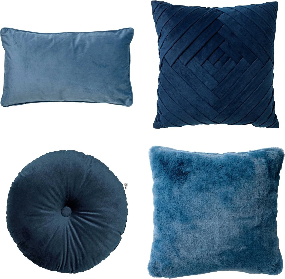 Geef jouw interieur in een handomdraai een nieuwe look met deze vierdelige set sierkussens in de kleur blauw. Alle sierkussens hebben een rits en worden geleverd inclusief polyester binnenkussen. De stof is lekker zacht en makkelijke te combineren. De set wordt geleverd in één doos.