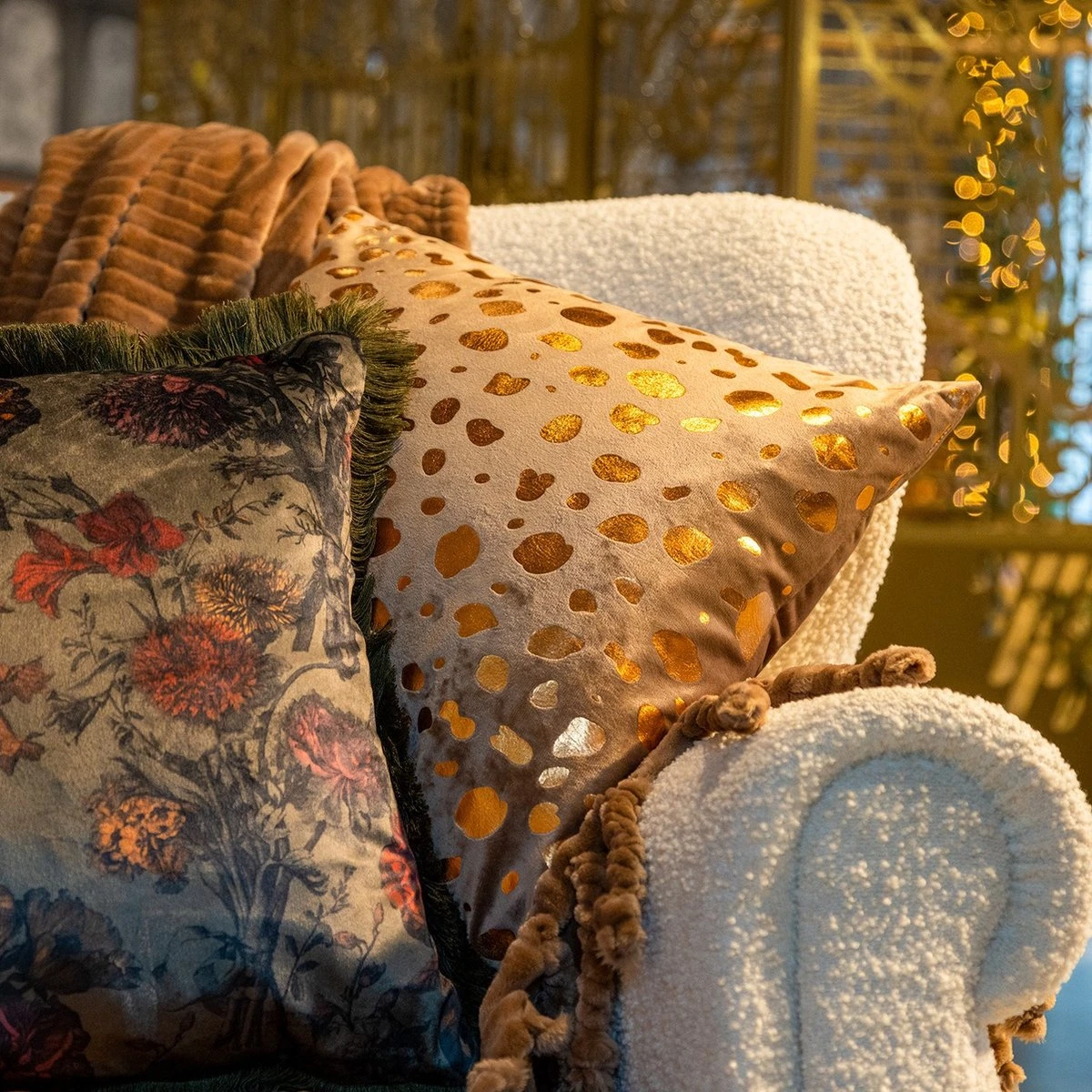 Kussenhoes Tino heeft een luxe, gouden gestipte print, waarmee het kussen een echte eyecatcher is. De kussenhoes in de kleur Tobacco Brown heeft een formaat van 45×45 cm en is gemaakt van 100% polyester. De kussenhoes wordt geleverd excl. een binnen kussen. Met de kussens van Dutch Decor kun je eindeloos blijven combineren!