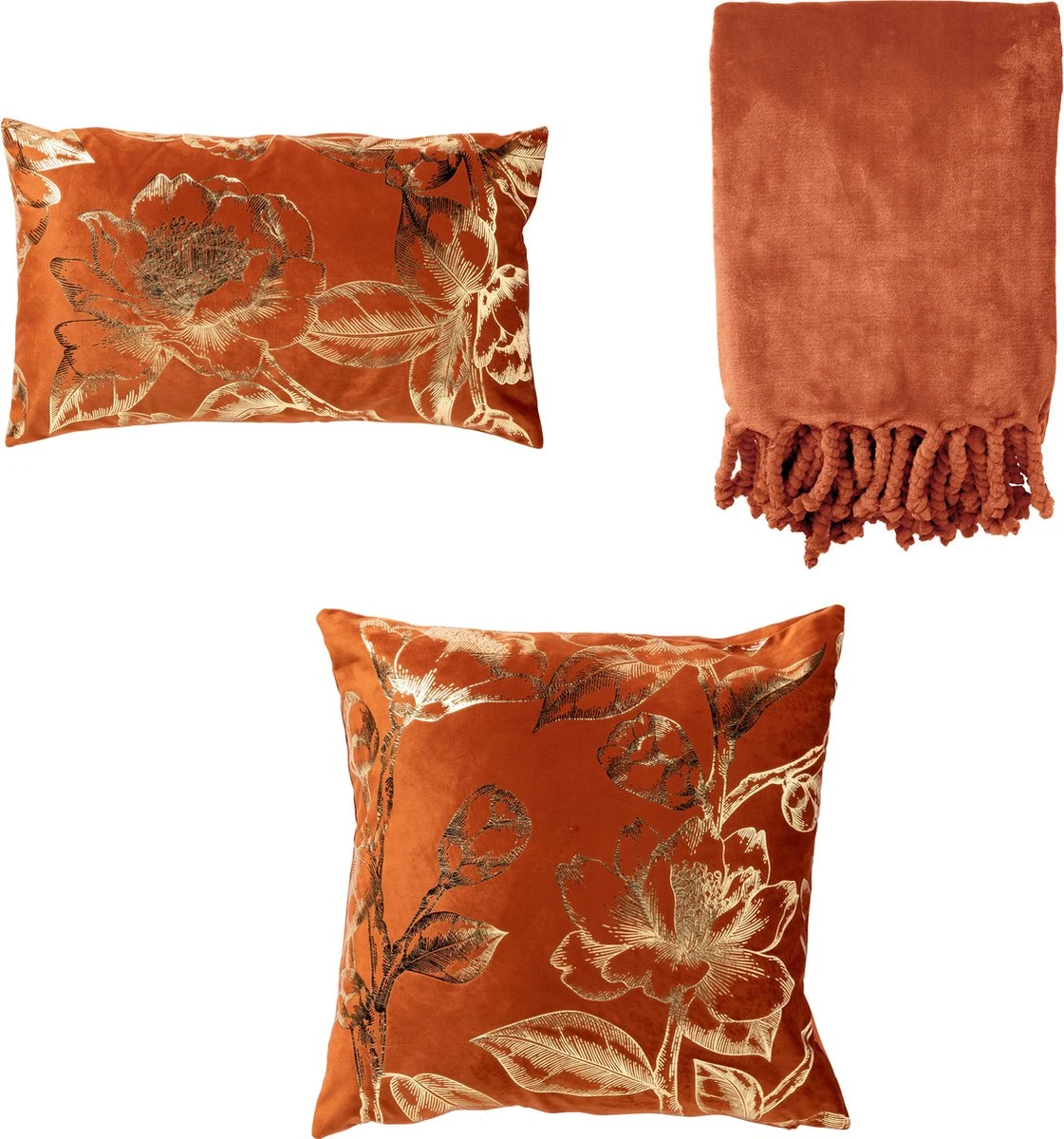 Sierkussen Avery geeft jouw interieur door de gouden gebloemde print een luxe uitstraling. Het sierkussen in de kleur Potters Clay heeft een formaat van 45×45 cm en is gemaakt van 100% polyester. De kussenhoes wordt geleverd incl. een passend binnen kussen gemaakt van polyester.