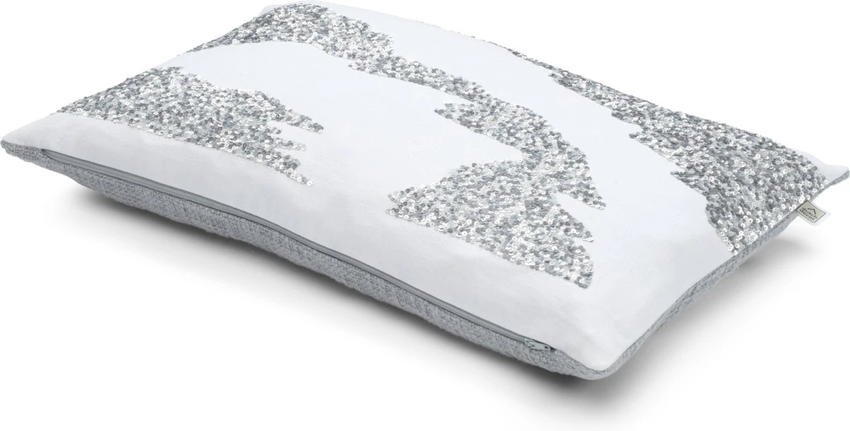 XS Kussenhoesje met zilverkleurige en lichtgrijze pailetten. Door de handige rits is het kussenhoesje makkelijk te vullen met een 30×50 cm vulkussen. Kussenhoes Werna is eventueel ook verkrijgbaar als gevuld sierkussen.