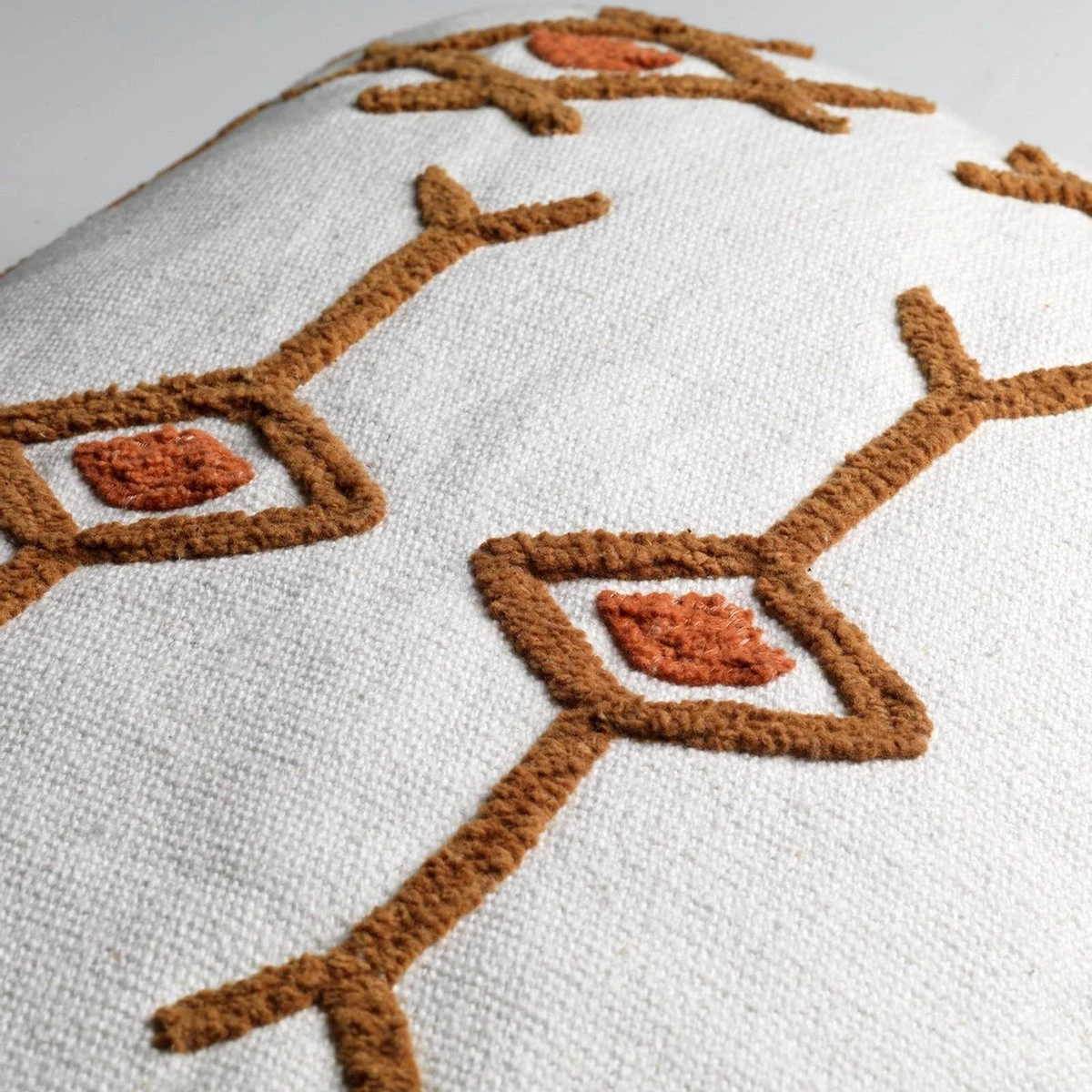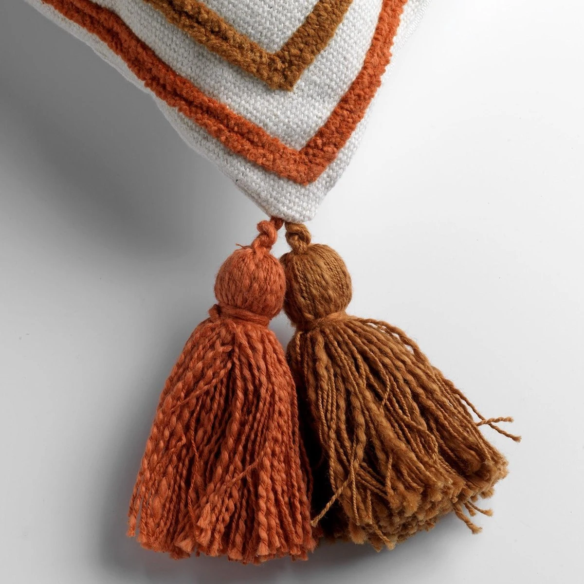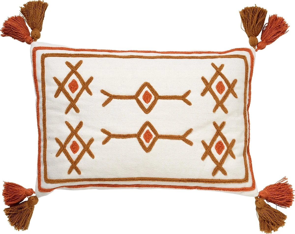 ZITA – Sierkussen Katoen 40×60 Cm – Snow White – Wit / Bruin / Terra – Kussen Met Flosjes – Inclusief Binnenkussen