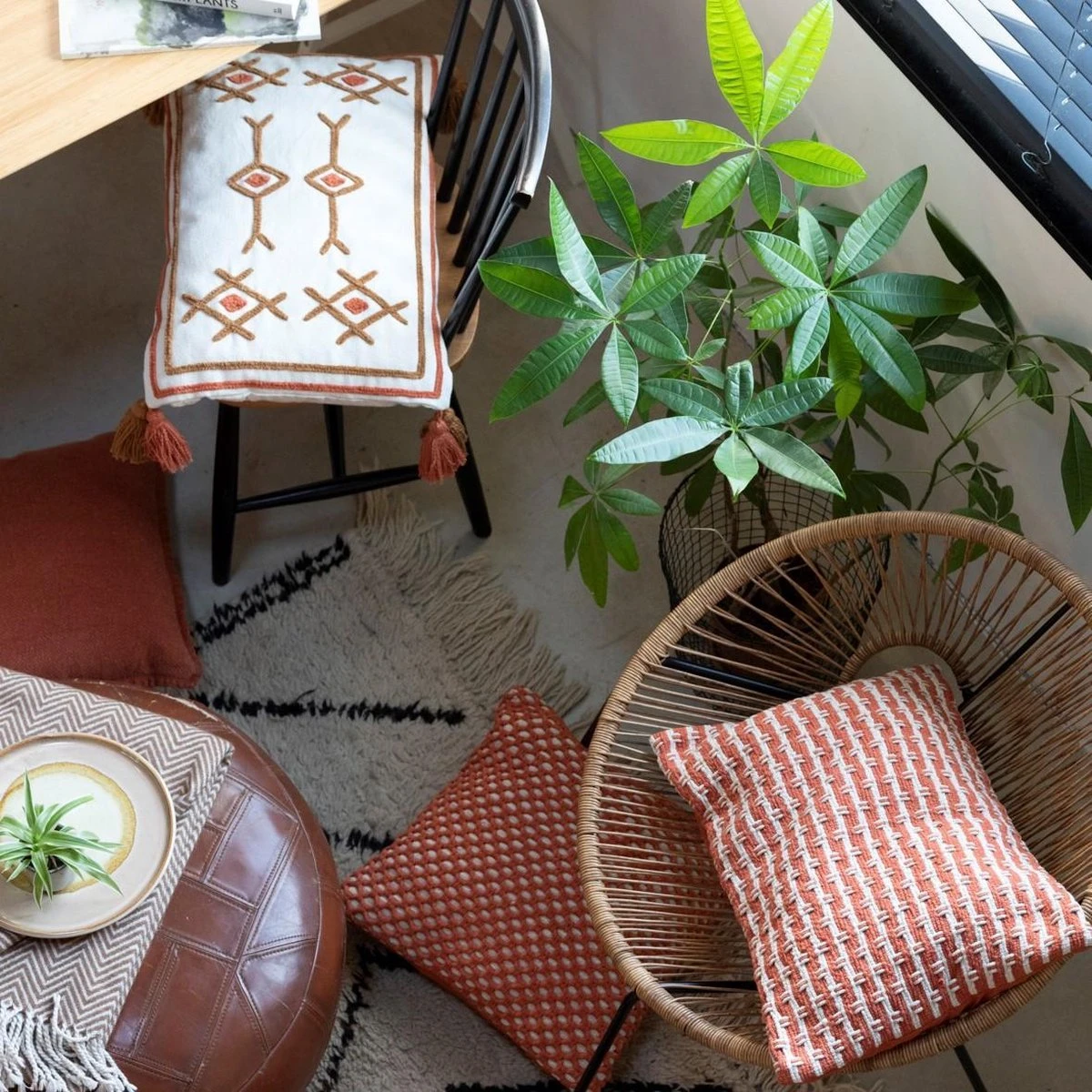 RUBY – Kussenhoes Katoen 45×45 Cm Muted Clay – Roze – Met Flosjes – Exclusief Binnenkussen