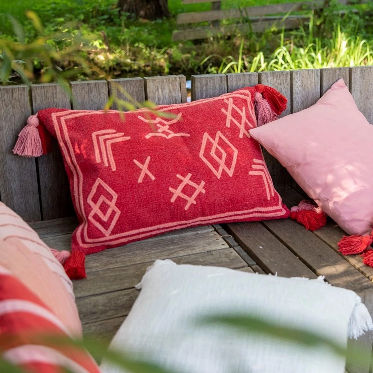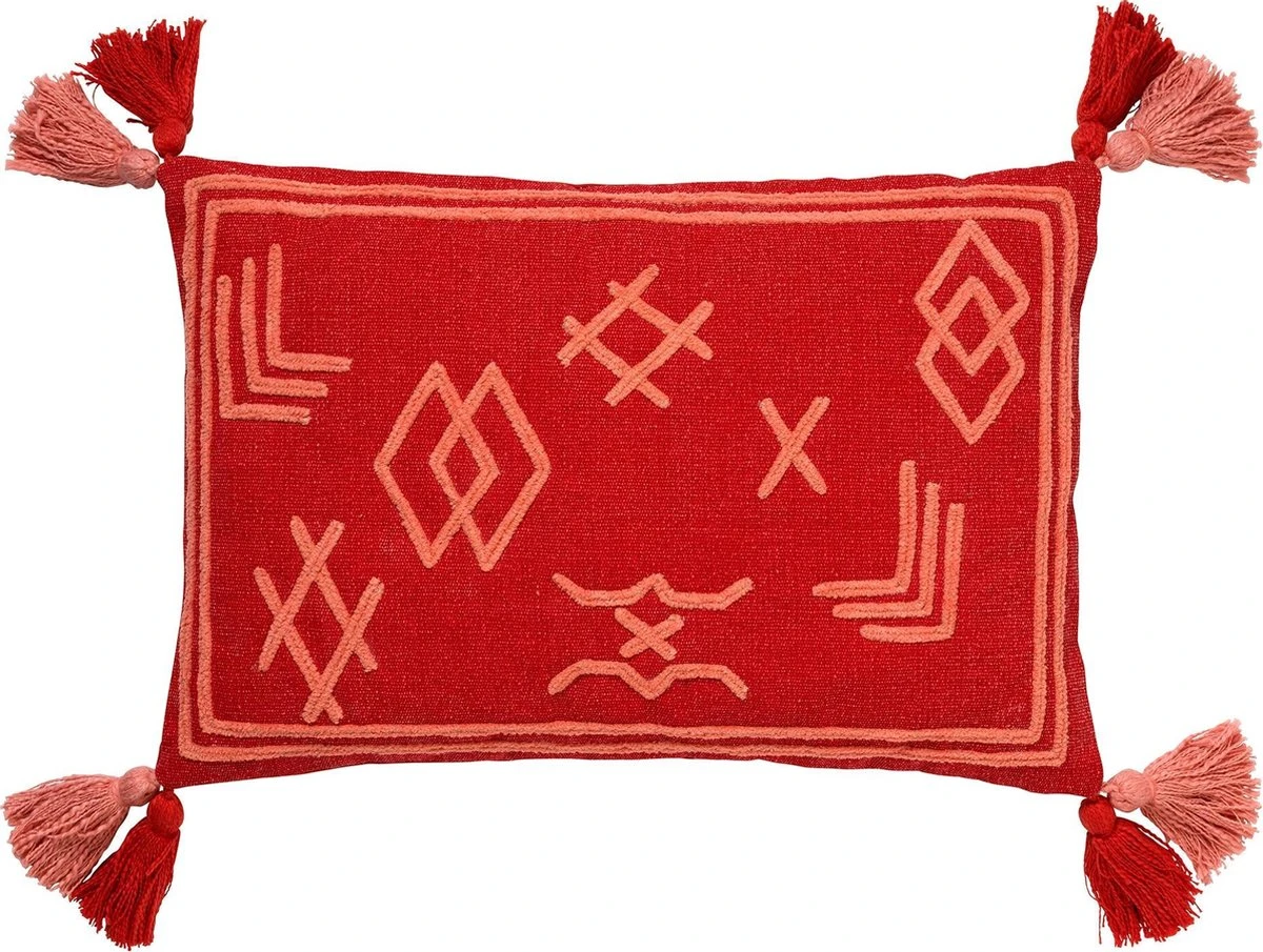 Sierkussen Zola geeft jouw interieur een sfeervolle uitstraling. Dit sierkussen met afmeting 40×60 cm in de kleur Aurora Red heeft een aztec print en is voorzien van een rits. Sierkussen Zola wordt geleverd met passend vulkussen.